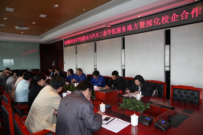 机电与汽车工程学院党总支负责人、主持工作的副院长分别汇报了2015年学院服务地方的工作总结和2016年服务地方工作的计划要点。会上,围绕产学合作项目、技术服务、教师挂职、技术技能人才培养,丁继安副校长代表学校与久立集团,机电与汽车工程学院相关负责人代表学院与久通物流机械有限公司、蒂尔森电梯有限公司分别签订了深化校企合作的协议。