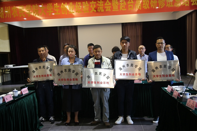 6月3日,湖州农民学院召开农民大学生创业经验交流会暨赴台高级研修班总结会。校党委书记、农民学院管委会副主任周家健;市政协副主席、农民学院院长沈琪芳;副校长、农民学院副院长叶主以及农民学院副院长张国强、凌跃锋、李卫旗等出席会议。全市58家农民大学生创业基地经营主体以及全市家庭农场主赴台高级研修班的学员参加了会议。会议由叶主副校长主持。