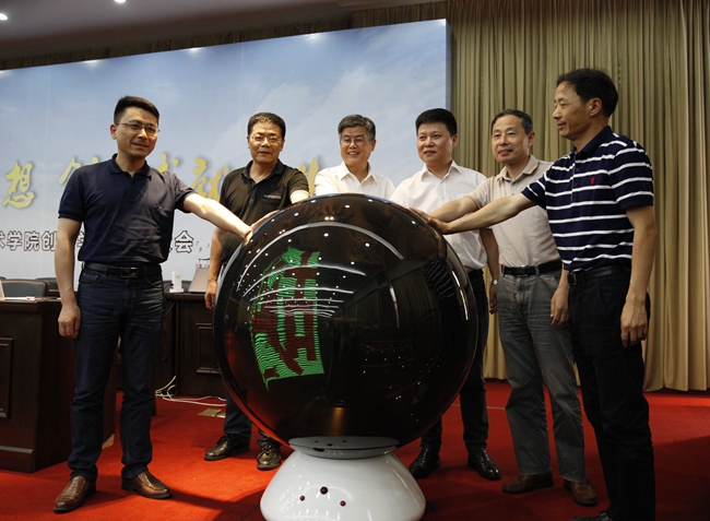 校党委书记周家健、创业学院院长胡世明及主席台就坐领导共同按下创业学院成立的水晶球,标志着我校创业学院正式成立。成立大会前,创业学院还以视频短片的形式,回顾和展示了我校10多年创新创业教育的发展历程和相关成果。(文/潘百翔、亓嘉 摄/徐清)