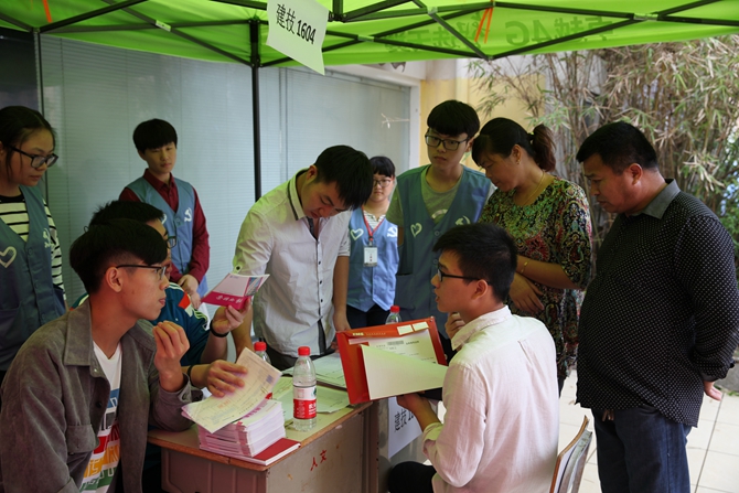 班主任及志愿者耐心细致地为新生及家长解疑答惑