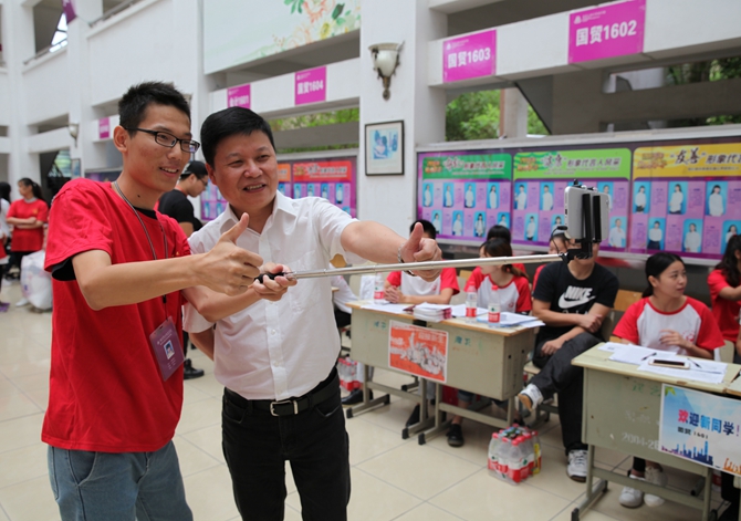 各二级学院紧密结合学生实际和专业特色,精心筹划开展了各具特色的迎新服务。商贸与经济管理学院自制了一张别开生面的“高铁票”,始发站为“五湖四海”,终点站为“湖州职院”,发车日期为“2016年9月17日”,票价为“‘3年/36个月/1095天’光阴”,并注明“限乘当日当次车”。除COSPLAY、“快闪”外,在今年的迎新现场,时下流行的微信照片打印机吸引了众多新生及家长的关注。新生只需简单地用手机扫下学校官方微信公众号的二维码,一张特制的6寸照片便可当场送至新生们的手中。记者在迎新现场发现,各二级学院接待点整齐排列,新生接待工作人员认真负责,一丝不苟,对家长、新生的各类问题进行耐心解答,将《新生报到流程图》、《新生手册》等发放到新生手中,校党委宣传部、部分二级学院还通过微信群,QQ群和微信公众平台等新媒体,提前和新生建立联系,进行交流,及时向新生们推送有关报到、军训、入学教育、心理适应等内容,为新生提供从入学到大学生活所需要的指导信息。