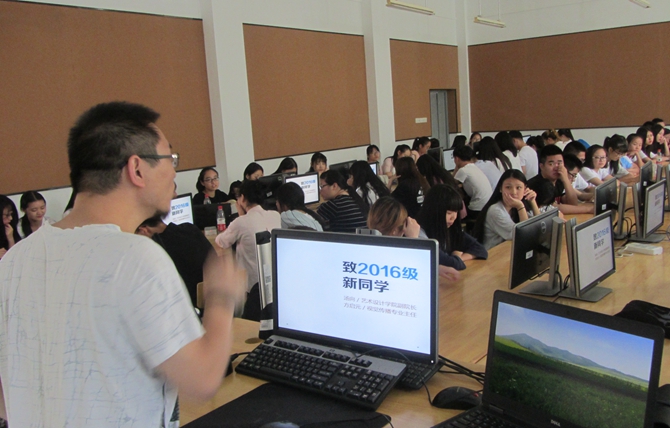 艺术设计学院今年的新生始业教育延续校园文化品牌“新生引航—NSO套餐”教育工程活动,涵盖了理想信念教育、校规校纪教育等七个模块。当天上午,艺术设计学院选派学长、学姐带领2016级新生分批游览校园,为新生介绍校史校情,拉开了“成就未来的艺术家”——专业初体验始业教育的帷幕。在《学生手册》的学习中,学院注重通过“防诈骗”视频观看、新生自行研读、学长学姐案例讲解、班主任集中宣讲等方式提高始业教育的针对性。当天下午,学院还开展了“专业教师与新生面对面”活动,通过集中讲解、师生交流、网络沟通等多种方式展开专业教育,并带领新生参观专业实训室。建筑工程学院除组织2016级新生学习《学生手册》等规章制度、开展安全知识与公寓文明讲座等常规“动作”外,还组织专业教师带领新生参观了建筑工程相关的实验实训室。