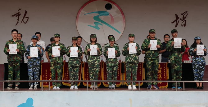 9月30日下午,学校举行2016级新生军训会操暨表彰大会,校党委副书记丁根林充分肯定了2016级新生军训取得的成果,并希望全体同学始终牢记军训的宗旨,在今后的学习和生活中,继续发扬坚韧、执着、团结、奋进的优良作风,践行“崇德尚能”的校训,用军训中所表现出的坚强的精神、顽强的毅力和严格的组织纪律性,去书写未来三年光辉的历史,努力使自己成为德、智、体、美、劳全面发展的大学生,共同营造良好的校风、学风,为学校建设省内有地位、国内有影响的区域性高职名校做出自己的贡献。