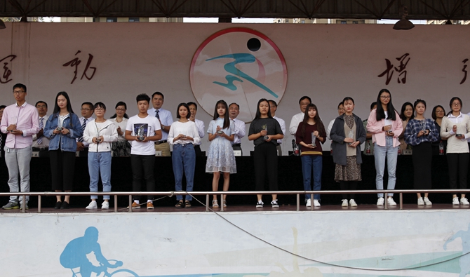 教师代表、商贸与经济管理学院刘丽霞老师,老生代表、机电与汽车工程学院自动化1503班夏超同学,新生代表、艺术与设计学院视觉传播设计与制作1602班金徐帆同学先后作了发言。(文/潘旭艳 摄/施敏锋)