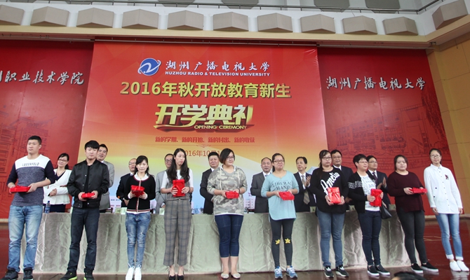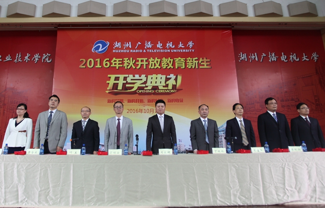 10月16日上午,学校在艺体中心隆重举行湖州广播电视大学2016秋开放教育新生开学典礼。学校党政领导班子全体成员、各教学点负责人、新生班主任、远程教育学院教师以及获奖学员参加了开学典礼。典礼由副校长叶主主持。