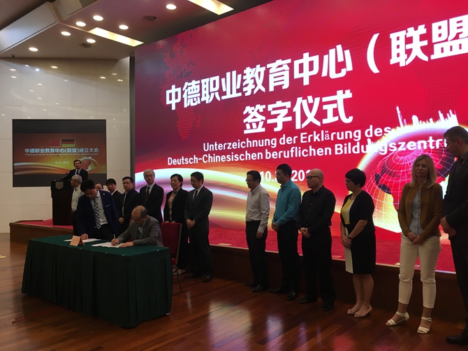 成立中德职业教育中心(联盟)旨在搭建中德职业教育合作平台,实现中德职业教育资源共享,促进中国职业教育大发展。参加大会的各成员单位围绕“中德职业教育中心”(联盟)这一主题进行了深入探讨,确立中德职业教育系统培训、中德合作职业教育课程班、中德师资科研团队、留学研学项目等主要合作内容,并确定杭州职业技术学院、上海第二工业大学和浙江工业职业技术学院为联盟设在中国的三个培训基地。(文/李师君)