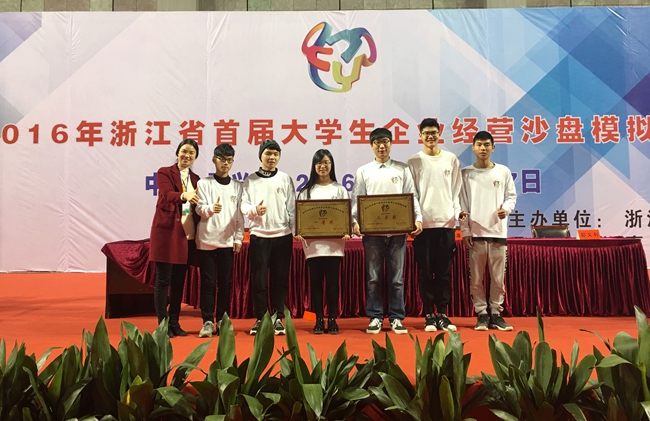 11月26—27日,2016浙江省首届大学生企业经营沙盘模拟竞赛在嘉兴体育馆举行。来自全省的122支本科和高职院校代表队参加了本次竞赛。经过紧张激烈的角逐,由商贸与经济管理学院刘丽霞、蒋伟男老师指导的投资1401班柳忆婷、投资1401班林威、电商1501班郑李赞同学组成的团队以高职组总分第一名的成绩荣获一等奖;由物流与信息工程学院马秀丽老师指导的物流1502班金永海、软件1601班叶游南、物流1601班金灵勇同学组成的团队获二等奖。