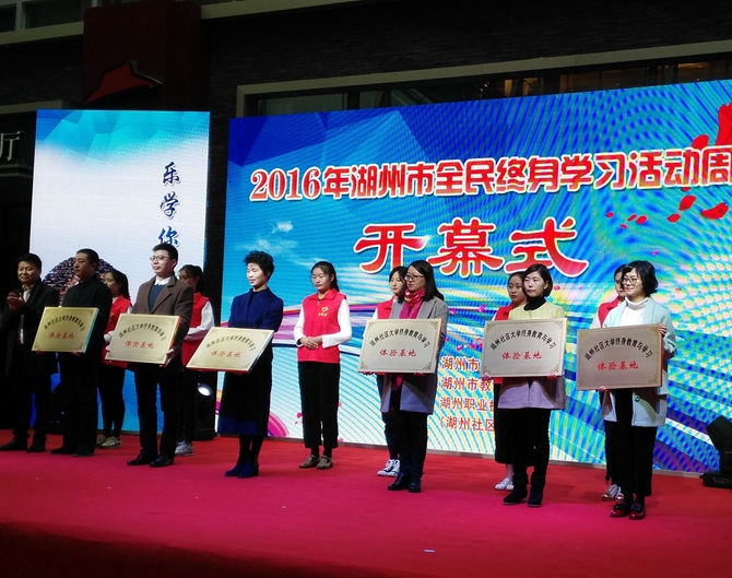 2016年湖州市全民终身学习活动周由市委宣传部主办,市教育局、我校(湖州社区大学)共同承办。各县(区)教育局分管领导、职能科室负责人,吴兴区、南浔区各乡镇(街道)分管领导,各县(区)社区学院、乡镇(街道)社区教育中心、湖州社区大学终身教育与学习体验基地合作单位负责人和企业分校负责人、各演出单位演职人员、各获奖代表、新闻媒体记者及市民代表等近300人参加了活动。(文/费永强 公风华)
