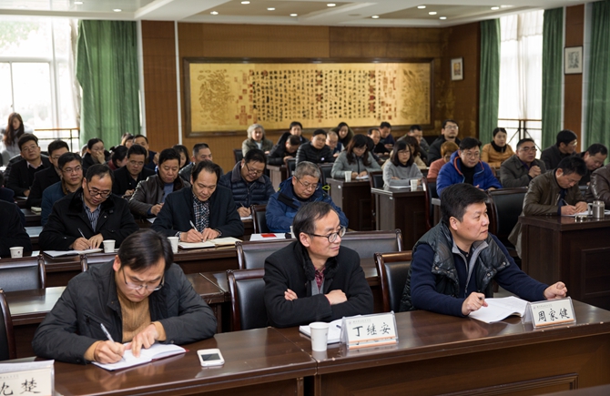 12月28日下午,学校召开中层干部2016年度考核暨届中考核会议。校领导班子成员、全体中层干部参加会议。党委副书记丁根林主持会议。