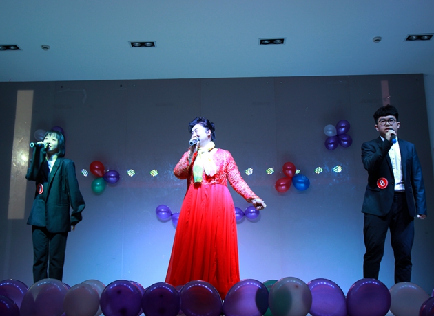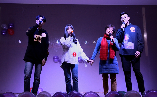 本次比赛的亮点在开场的“帮帮唱”环节,来自市陌二社区“红歌老年合唱队”的阿姨们和参赛选手同台发声,一首首耳熟能详的老歌的旋律在赛场回荡。每周六下午的青年志愿者红歌教学志愿者服务活动已经变成商贸志愿者和社区阿姨们每周“老时间老地点不见不散”的约定。此次“帮帮唱”选择的歌曲也都是在“红歌课堂”上志愿者教唱的歌曲。绚丽的灯光下,选手们用一曲曲或温婉动人或温馨甜蜜或激情澎湃的歌曲,向观众们全面展现了“乐声飞扬,我最闪亮”的一面,各具特色的表演赢得满堂喝彩。