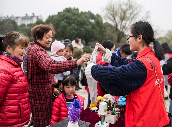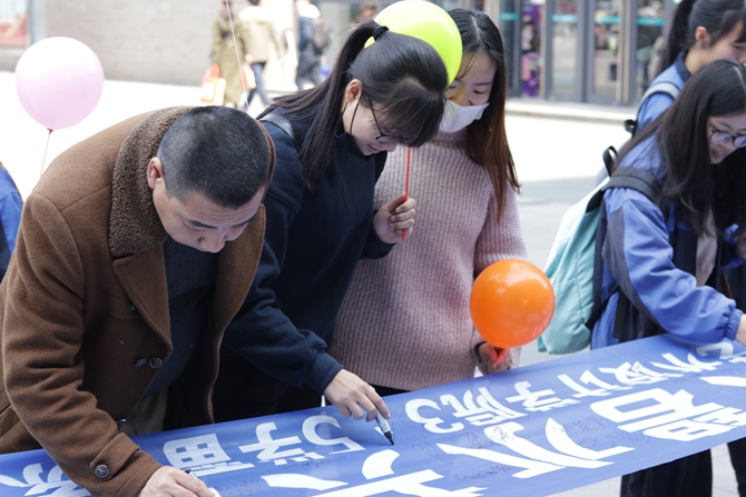 艺术设计学院分团委组织了30余名志愿者在衣裳街、浙北大厦和爱山广场同时开展主题为“大手牵小手,碧水蓝天共拥有”环保宣讲活动。同时,该学院分团委连日来还组织志愿者深入紫云社区等结对共建社区,开展“劣Ⅴ类水剿灭战”专项宣讲,向社区居民发出“向污水废水说再见,向美丽湖州说你好”的倡议,发放“五水共治”知识汇编,并在附近水道取样进行了初步的检测。