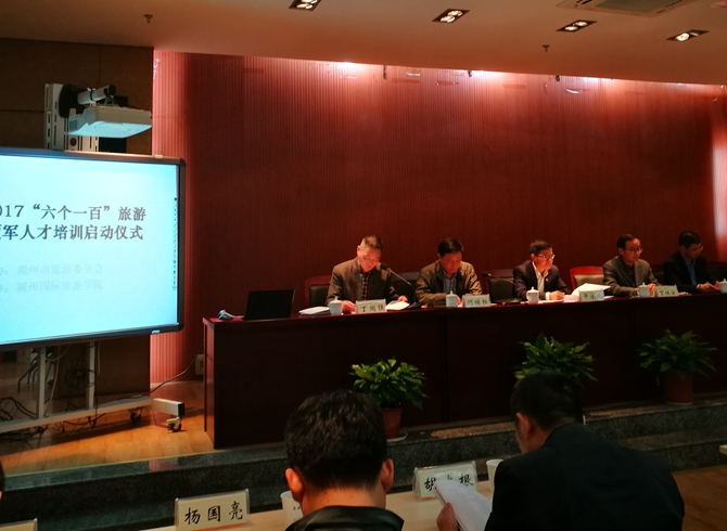 4月5日,2017年湖州市“六个一百”旅游领军人才培训启动仪式在我校湖州国际旅游学院举行,这也是湖州国际旅游学院成立以来首次开班。市旅委党委书记、主任干永福,市旅委副主任何继红、孙军,我校副校长丁继安、湖州国际旅游学院负责人等参加启动仪式。