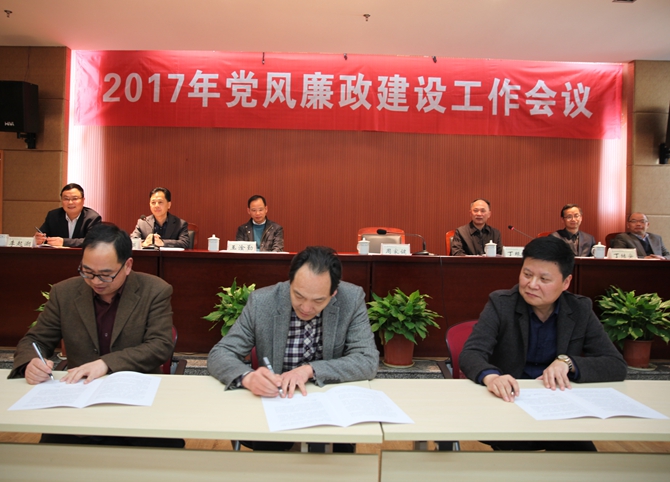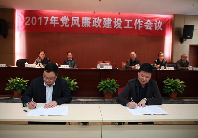 会上,校党委书记周家健与副校长、二级学院党政负责人、职能部门负责人等各责任方代表现场签订了《落实党风廉政建设责任书》。
