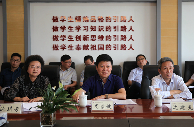 调研座谈会上,周家健代表学校感谢湖州市委、市政府对学校发展的关心和支持,并从对接政府需求,坚持特色办学,“四位一体”办学功能进一步放大;坚持内涵攻坚,人才培养质量全面提升;坚持服务地方,服务地方经济社会发展水平显著提升等方面汇报了学校的发展情况。他指出,学校近年来始终坚持以立德树人为根本,围绕“深化改革、转型发展、服务地方”的工作主线,以办人民满意的高职教育为愿景,以建设区域性高职名校为目标,全面深化“八项改革”和内涵建设攻坚,希望市委、市政府今后能继续关心支持学校发展。