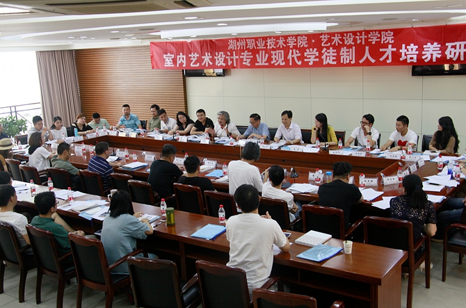 研讨会上,艺术设计学院负责人对室内艺术设计专业“现代学徒制”的培养思路进行了解读,围绕“什么是学徒制”“为什么要做学徒制”“怎样做好学徒制”三个基本问题,就落实推进“现代学徒制”试点工作的运行模式、实施方案等关键点展开阐述。来自浙江至圣装饰设计有限公司、广东星艺装饰集团湖州分公司、宁波慈溪芥子装饰设计事务所、嘉兴平湖艺卓装饰工程有限公司、浙江天和建筑设计有限公司、丽水梦天木门集团有限公司等企业负责人从行业岗位技能的发展需求、职业岗位的认知、设计企业人才培养体系的构建、“现代学徒制”培养的校企互动等方面分享了就业市场的一线经验。