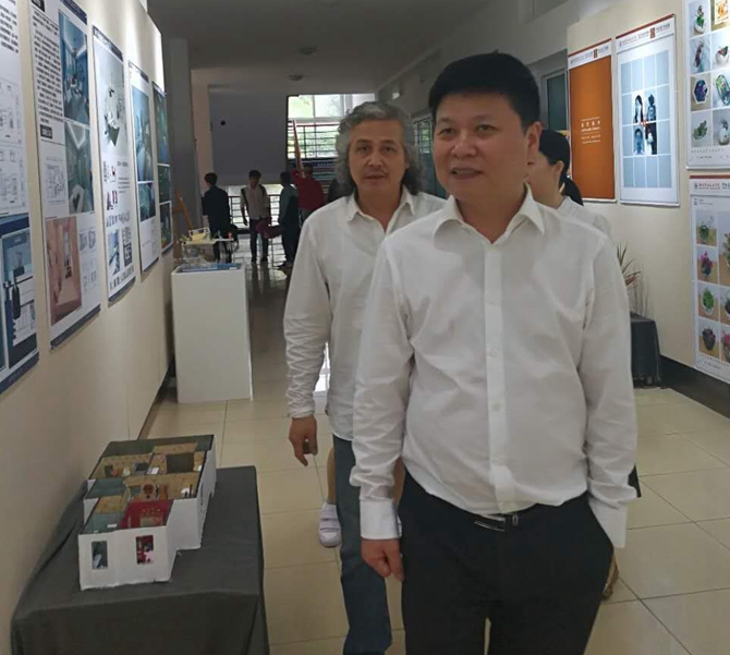 6月13日,校党委书记周家健赴江苏、山东兄弟院校学习考察归来后,便来到艺术设计学院艺展空间,观摩指导该学院2017届毕业设计作品展,党委(院长)办公室负责人、艺术设计学院党政班子成员陪同观摩。