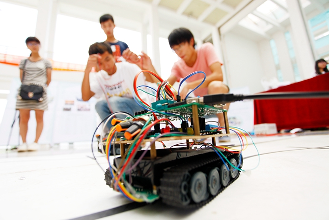 过去的2016年,在创新工场团队的指导下,机电与汽车工程学院学生创造发明和技能精神成绩突出:学生为第一发明人申请专利59项,其中发明专利14项、实用新型专利45项;授权专利34项,其中发明专利2项、实用新型专利32项。学生参加各级各类学生技能竞赛累计获得省级一等奖2项、省二等奖3项、三等奖7项。今年3月,创新工场团队成员左希庆、黄锋、彭菊生、王荣扬、钱振华5位党员教师指导的4个项目被学校推荐至团省委参加“大学生新苗计划”的遴选,占全校推荐总数的2/3。今年5月,在全国职业院校技能大赛中,创新工场团队成员盛强和陆波两位党员老师共同指导的学生在“智能电梯装调与维护”和“自动化生产线安装与调试”赛项中均获二等奖。