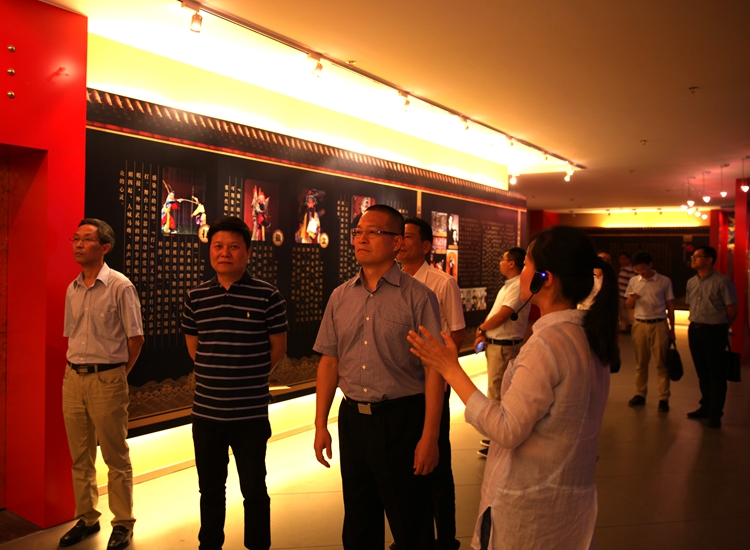 卢跃东副市长在校党委书记周家健、校长沈建民陪同下参观包畹蓉京剧服饰艺术馆