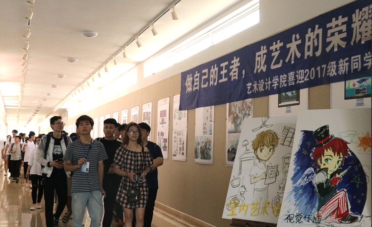 艺术设计学院今年的迎新主题是“你有freestyle吗?”,凸显“感触艺术”“学习艺术”“成就艺术”三个关键词,延续以学校第二届校园文化品牌“新生引航—NSO套餐”教育工程活动为基点,制定《新生引航—NSO套餐》,涵盖了理想信念教育、校规校纪教育等七个模块。当天上午,艺术设计学院选派学长、学姐带领2017级新生分批游览校园,为新生介绍校史校情,拉开了“成就艺术人生”——专业初体验始业教育的帷幕。班会课落脚于“制度学习”,主抓学生工作和学生日常管理,组织新生系统学习《学生手册》《公寓文明管理规定》《校园安全须知》等,力求做到形式新颖、注重效率,喜闻乐学,比如在《学生手册》的学习中,学院注重通过“防诈骗”视频观看、新生自行研读、学长学姐案例讲解、班主任集中宣讲等方式提高始业教育的针对性。当天下午,学院还开展学业指导,在“专业教师与新生面对面”活动中,通过集中讲解、师生交流、网络沟通等多种方式详细了解教学运行情况、培养计划、专业特色、就业前景等相关内容,并带领新生参观专业实训室,引导2017级新生提前做好大学三年的人生规划。