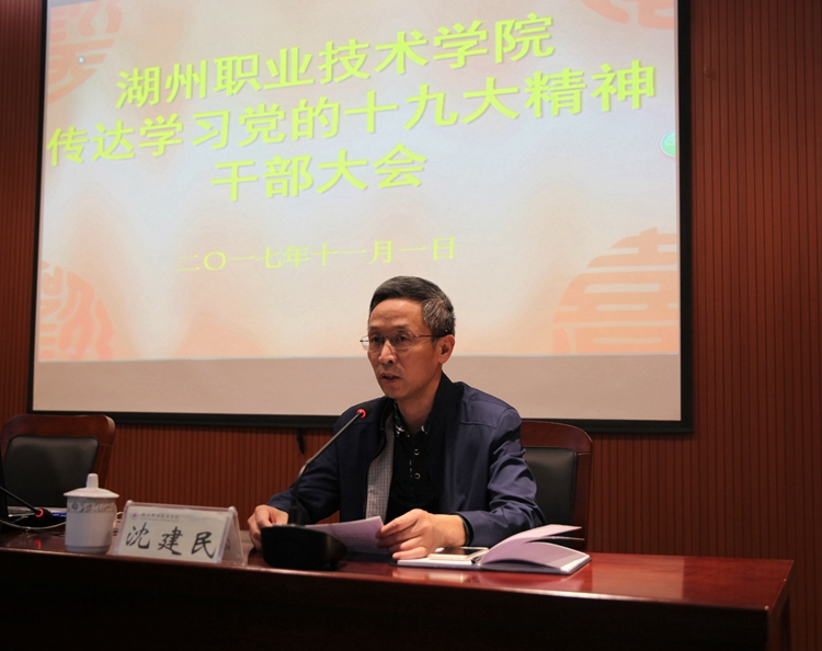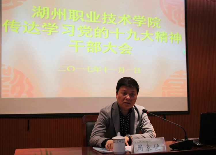 11月1日下午,学校召开干部大会,传达学习党的十九大精神。校党委书记周家健从五个方面对党的十九大精神作了传达。校党委副书记、校长沈建民主持会议。