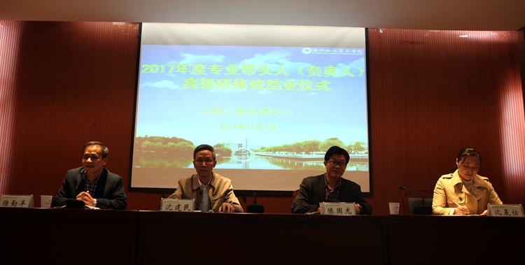 11月7日下午,学校在教师发展中心举行2017年度专业带头人(负责人)高级研修班结业仪式。校长沈建民,人事处、教务处、督导室负责人出席结业仪式。
