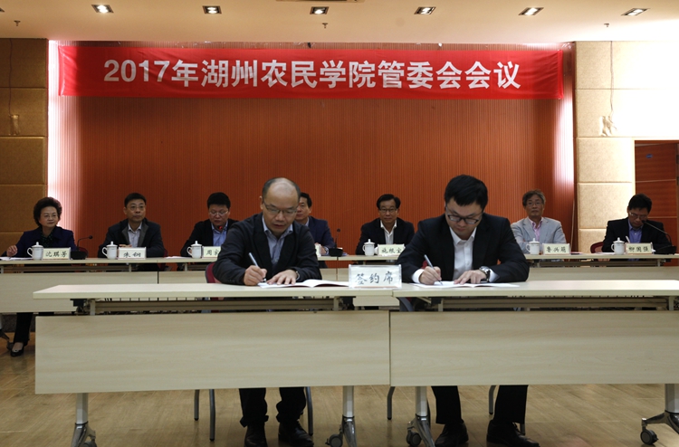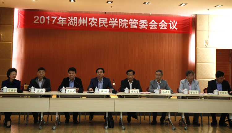 11月3日上午,2017年湖州农民学院管委会全体会议在我校举行。湖州市委副书记陈浩、副市长施根宝,浙江大学新农村发展研究院副院长、农业技术推广中心主任鲁兴萌,中国社会科学院农村发展研究所研究员朱钢,校党委书记周家健、校长沈建民、副校长叶主、湖州农民学院院长沈琪芳等参加会议。会议由周家健主持。
