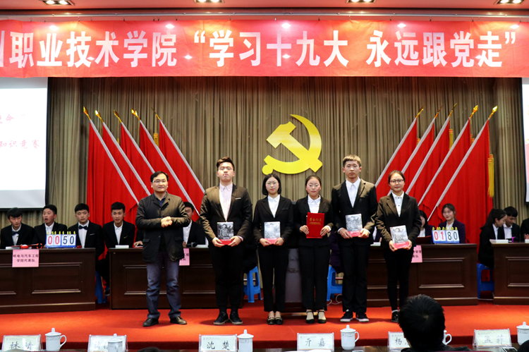 经过前期组织发动,各二级学院分别选派5名选手组成学院代表队参加本次现场知识竞赛,比赛设有必答题、抢答题、限时题、风险题等环节,经过紧张角逐,建筑工程学院代表队荣获一等奖;商贸与经济管理学院代表队、旅游与公共管理学院代表队获得二等奖;艺术设计学院代表队、物流与信息工程学院代表队、机电与汽车工程学院代表队获得三等奖。在近两个小时的激烈比拼中,在场的全体青年团员一起学习了90余道比赛用题,深刻认识了每道试题所蕴含的丰富理论知识,进一步加强了对党的十九大报告和习近平新时代中国特色社会主义思想的了解和把握。