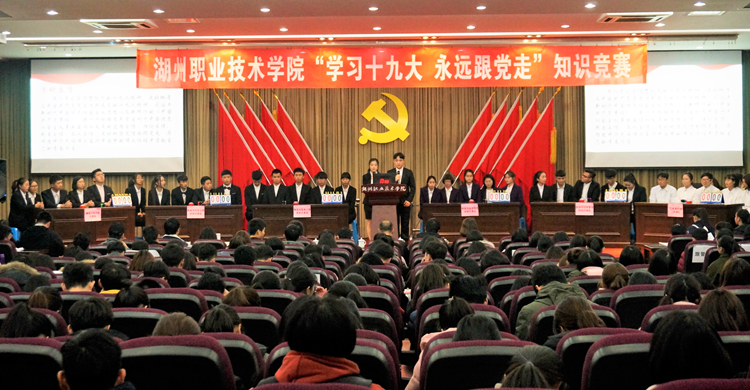 为深入学习宣传贯彻党的十九大精神,更好地在团员青年中掀起学习宣传贯彻党的十九大精神热潮,深入普及中国共产党党史特别是党的十九大精神、习近平新时代中国特色社会主义思想以及新修订的《中国共产党章程》,12月6日晚,由校党委宣传部主办、校团委承办、各二级学院团委协办的“学习十九大 永远跟党走”知识竞赛在行政楼一号报告厅隆重举行。校党委宣传部、思政理论教研部、校党委学工部(学生处)、校团委等部门负责人、各二级学院学工办辅导员代表及来自各二级学院的350余名团员青年参加了本次活动。
