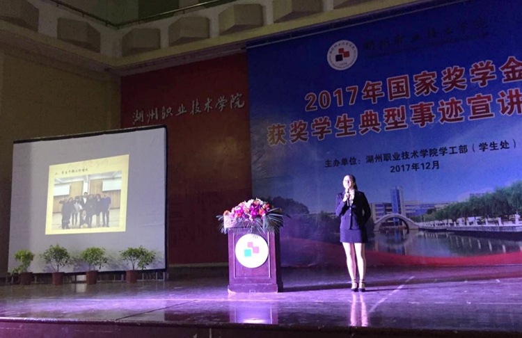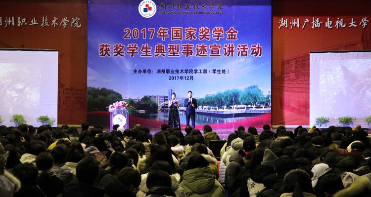 宣讲活动现场,来自建筑工程学院的张燕如同学、机电与汽车工程学院的周鸿杰同学、物流与信息工程学院的陈修毅同学、商贸与经济管理学院的蔡培勋同学和汪光君同学、旅游与公共管理学院的罗希希同学和艺术设计学院的毛逸婷同学等7位国家奖学金获奖学生分享了他们学习工作中的优秀事迹。我校2600余名2017级新生参加了宣讲活动。