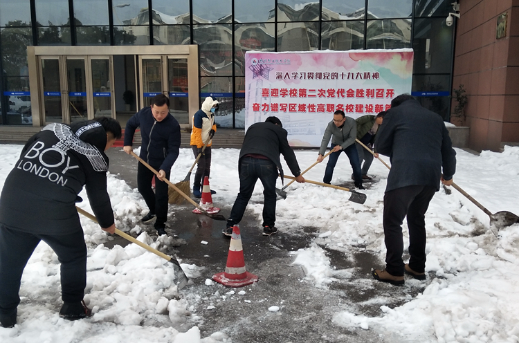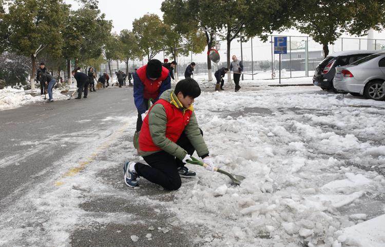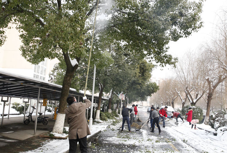 为有效应对雨雪冰冻天气带来的不利影响,积极响应市政府应急办通知要求,切实保障校内车辆和师生通行安全,学校党委研究决定,在全校范围内组织开展“扫雪清路、除冰护树”专项行动。1月29日上午,由各党总支(直属党支部)牵头组织,学校党政班子成员、中层干部、教工党员、学生志愿者及资产公司后勤员工等参加了除雪行动。
