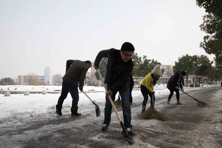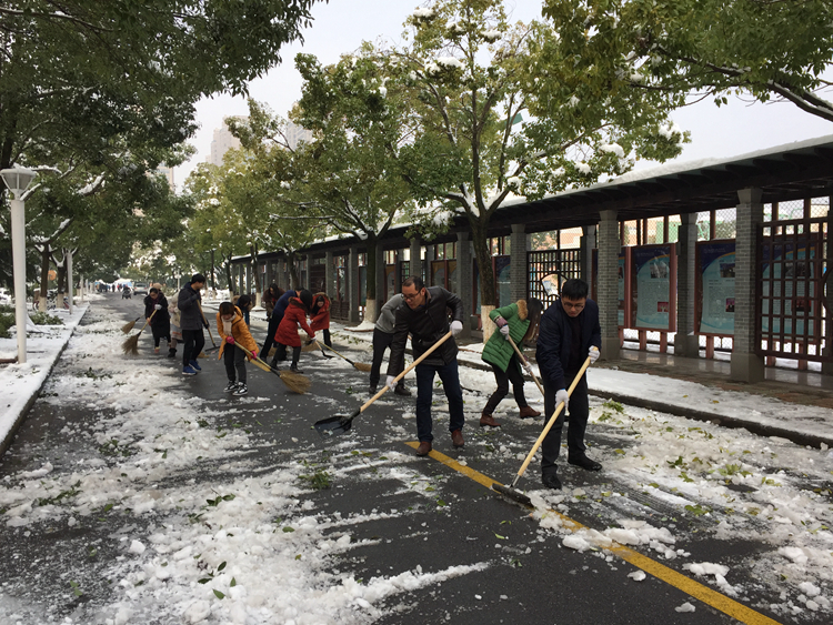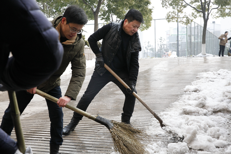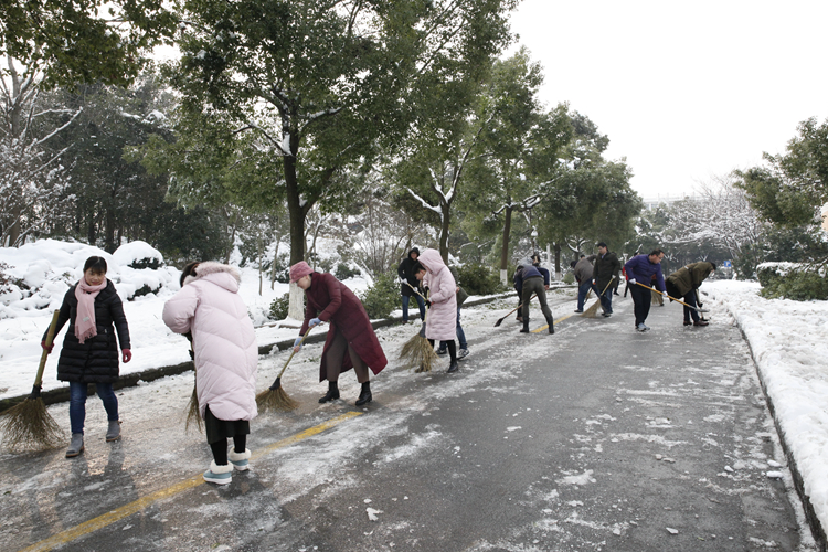 据悉,受北方强冷空气影响,湖州严寒冰冻天气预计将持续到2月初,学校党委提醒全校师生员工要切实注意出行安全,要求全体党员、干部充分发挥先锋模范作用,齐心协力抗击雨雪冰冻,为平安校园和平安湖州贡献自己的力量。(文/杨朝峰 摄/徐妍、刘竞、李珂、费永强、王钟斌等)