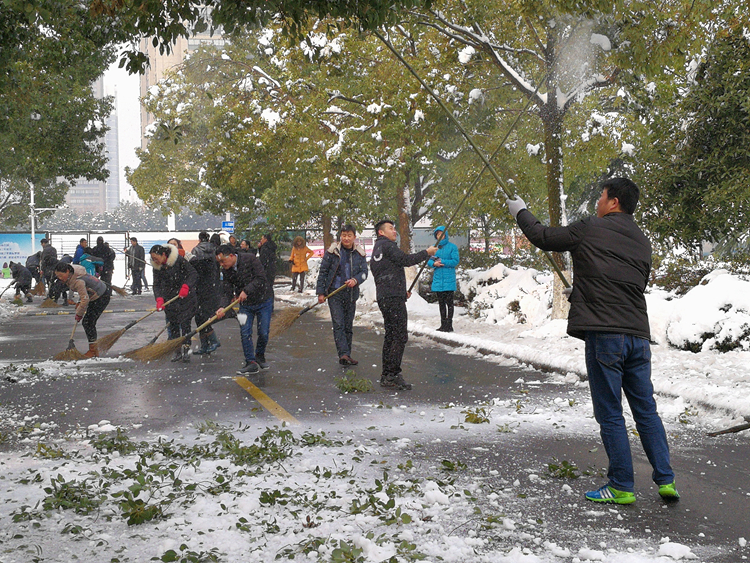 艺术设计学院党员、干部清除曲园路段积雪
