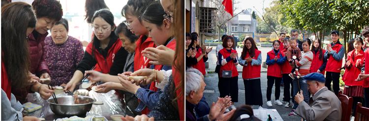 志愿服务是高校团员青年主动承担社会责任、践行社会主义核心价值观的主要途径之一。校青年志愿者协会组织志愿者走进龙泉街道紫云社区,和社区干部、居民一起擀皮子、包饺子,为社区的孤寡老人献上一顿热腾腾的美味饺子,听老人拉二胡、陪老人下棋、与老人闲话家常,让老人们感受到社区家一般的温暖;商贸与经济管理学院团委设在马军巷社区的“向日葵青年志愿岗”早早运转起来,他们联合派出所民警举办了社区安全教育活动,志愿者陪老人一起观看安全教育展板,聆听消防员介绍,对宣传内容进行更加细致的讲解和说明,志愿者们还来到签约结对的空巢老人、残疾人家里,帮助他们打扫家庭卫生;物流与信息工程学院团委组织志愿者赴龙泉街道开展垃圾分类主题宣讲活动,志愿者们耐心地为居民讲解垃圾分类的重要性、意义及做法,并送上宣传单页;机电与汽车工程学院“青春闪光”助残关爱团队走进墙壕里社区结对的9户残疾人家中,送上爱心开年礼,确定了每周一次的残疾人帮扶行动。