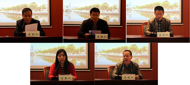 会上,人事处(教师发展中心)处长陆勤丰、学生处副处长(主持工作)兼学工部副部长、人武部副部长褚锡星、基建与资产管理处(招标办)处长谢云琪、商贸与经济管理学院院长兼党总支副书记嵇美华、远程教育学院院长兼社区大学办公室主任、农民学院办公室主任钱伟茂等5位中层干部代表进行了口头述职,其它中层干部采取书面述职。