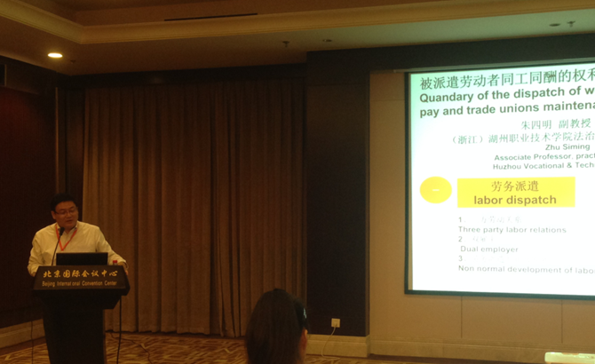 11月1日-3日,由中国劳动学会、中国劳动保障研究院主办,中国劳动学会劳动科学教育分会、中国人力资源开发研究会劳动关系分会、中国人民大学劳动人事学院、首都经济贸易大学劳动经济学院和中国劳动关系等单位承办的“国际劳动与雇佣关系协会第9届亚洲会议”在北京国际会议中心举行。思政理论教研部法治应用研究服务中心主任朱四明副教授应邀参加学术交流。