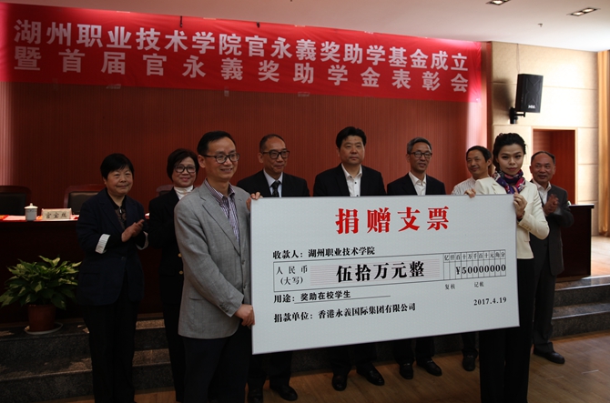 据了解,香港永�x国际集团有限公司于1981年由官永�x先生创立,主要在香港、新加坡及中国大陆地区从事物业投资及发展、物业管理服务、成衣采购及贸易等业务,1995年在香港联合交易所有限公司上市。公司创始人官永�x先生是1994年度香港“青年企业家”大奖得主,多年来一直热心公益事业。为支持高等教育事业发展,官永�x先生专门出资50万元,在我校设立永�x奖学金,用于奖助品学兼优和家庭经济困难的在校大学生,鼓励学生全面发展,这也是目前我校单笔奖励金额最大的、企业捐赠设立的奖学金。(文、摄/施敏锋)
