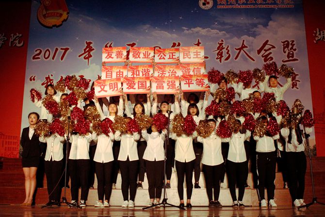 5月4日晚,学校2017年“五四”表彰大会暨“我们和水的故事”团支部风采大赛在体育馆举行。校党委副书记丁根林及党委宣传部、党委组织部、党委学工部、各二级学院党总支负责人和全体校团委委员、学校主要学生团干部及1300多名青年团员参加了大会。