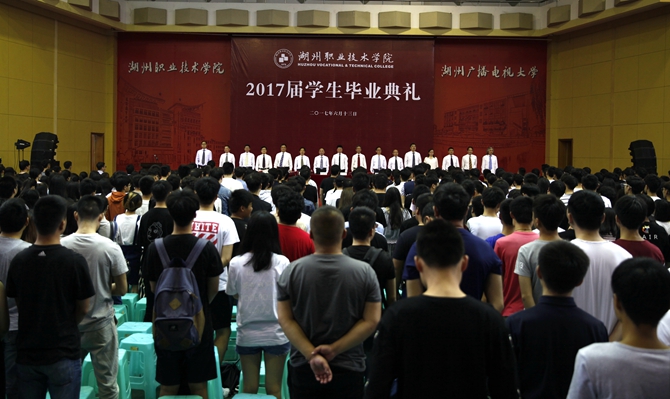 6月13日上午,学校2017届学生毕业典礼在体育馆举行。校党委书记周家健、校长沈建民及全体党政班子成员,教务处、学生处负责人,各全日制二级学院负责人、全体毕业生及班主任、辅导员参加毕业典礼。毕业典礼由副校长丁继安主持。