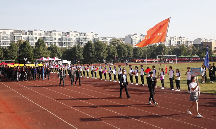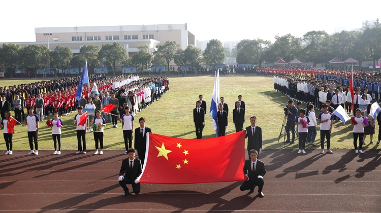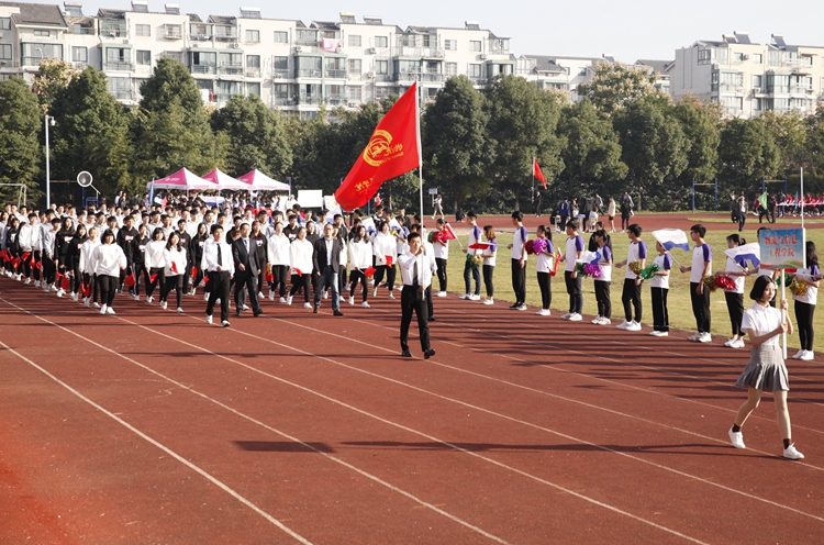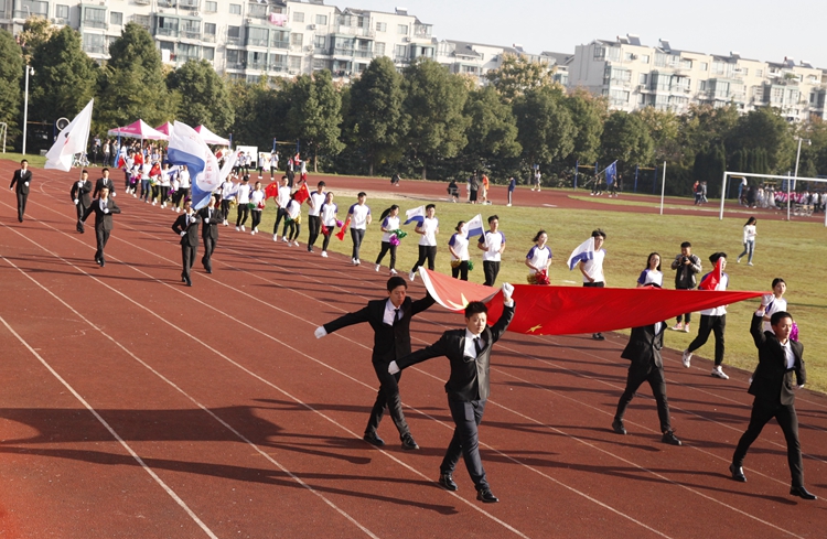 10月25日上午,学校第十八届田径运动会在田径场胜利开幕。开幕式上,伴随着激昂的运动员进行曲,护卫队手持国旗、校旗、运动会会旗依次走过主席台。随后,6个全日制二级学院代表队、教师代表队、裁判员组成的方阵依次入场。矫健的步伐,动作整齐,英姿飒爽;响亮的口号,气势磅礴、恢弘威武,充分展现了湖州职院人健康快乐、斗志昂扬的精神面貌。