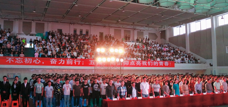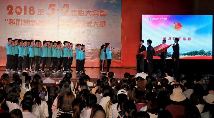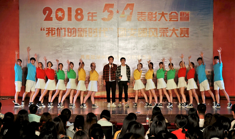 5月3日晚,学校2018年“五·四”表彰大会暨“我们的新时代”团支部风采大赛在体育馆举行。校党委副书记丁根林及党委组织部、党委宣传部、党委学工部、各二级学院党总支负责人和全体校团委委员、学校主要学生团干部及1400多名青年团员参加了大会。