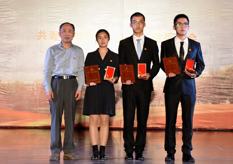 大会隆重表彰了学校首届学生“五·四”奖章3名获奖学生以及学生“五·四”奖章提名奖4名获奖学生,表彰了2017年度在团学工作中表现突出的61个先进集体和458名优秀个人,校团委学生兼职副书记洪羚媛同学代表校青年志愿者协会进行了交流发言。大会现场为37名新团员举行了入团宣誓仪式,也带领了现场的团员青年重温入团誓词,为8名适龄团员举行了退团仪式。表彰大会上,由27名成员组成的国旗护卫队首次精彩亮相,并作出庄严宣誓。