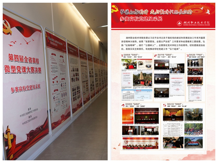 决赛场外,部分参赛高校围绕近年来党建工作特色与成效,图文并茂展示了党建工作推动服务中心工作,推动学校改革发展取得的成效。参展高校党建工作亮点纷呈,呈现出“一校一特色,一院一品牌”的党建风采。