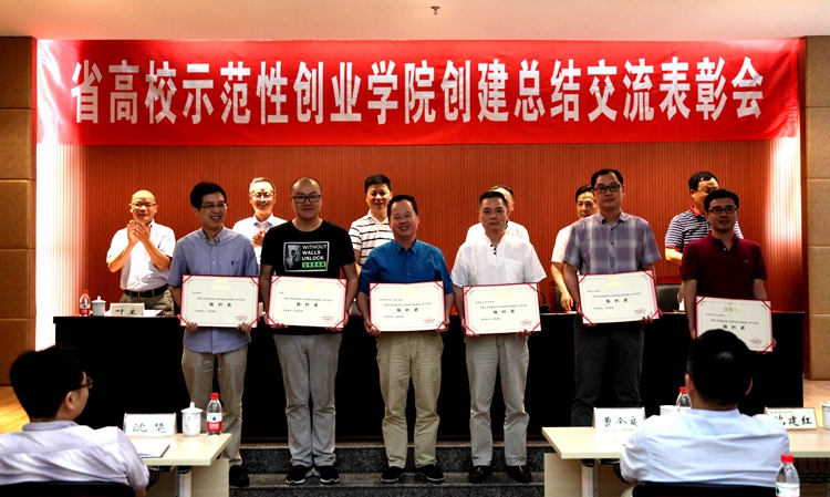 浙江省教育厅日前公布了普通高校示范性创业学院评选结果,我校荣获“浙江省普通高校示范性创业学院”称号。为表彰先进、总结经验,学校于6月14日在教师发展中心召开省高校示范性创业学院创建总结交流表彰会。校党委书记周家健,党委副书记丁根林、副校长丁继安、纪委书记吴海燕、副校长叶主、李起潮以及相关职能部门、二级学院负责人、全体获奖教职员工参加表彰会。会议由丁继安主持。