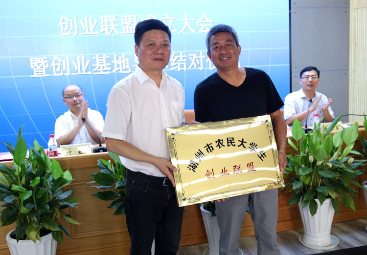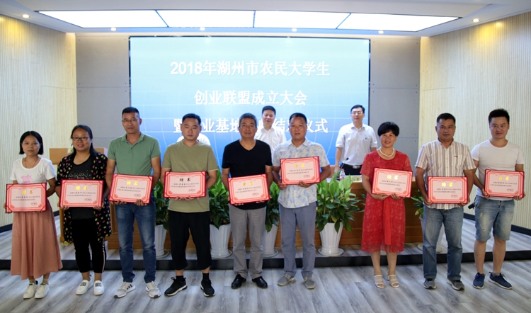 会上,与会领导为农民大学生创业联盟及2018年农民大学生创业基地授牌。会议确定了农民大学生创业联盟管理委员会成员。湖州咩咩羊牧业有限公司负责人项继忠担任湖州市农民大学生创业联盟管理委员会主任,并代表创业联盟发言。2015-2018年期间成立的农民大学生创业基地的负责人还与省、市、校三级指导老师进行了对接交流。(文/程家伟 摄/杨朝峰、杨浩)