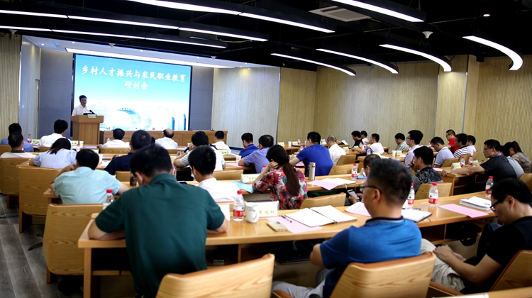为进一步学习领会习近平总书记新时代“三农”工作思想和“乡村人才振兴”的有关论述,切实把握乡村振兴背景下农村人才培养规律,明确农民职业教育的新形�荨⑿率姑�、新要求,更好地总结湖州农民学院的办学模式和经验做法,确保新时代湖州农民教育继续领先领跑、示范带动,7月6日,由中国社会科学院农村发展研究所、湖州农民学院管理委员会主办,湖州农民学院、湖州市农业和农村工作办公室承办的“乡村人才振兴与农民职业教育”研讨会在学校教师发展中心举行。中国社会科学院农发所党委书记、研究员闫坤,湖州市人大常委会副主任胡国荣,校党委书记、湖州农民学院管委会副主任、湖州农民学院院长周家健,湖州市委副秘书长、湖州市农办主任、湖州农民学院管委会副主任柳国强,农民学院管委会全体成员单位和三县两区有关领导,中国社会科学院、浙江大学及湖州师范学院等有关单位的专家教授参加会议。会议由柳国强主持。