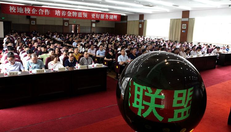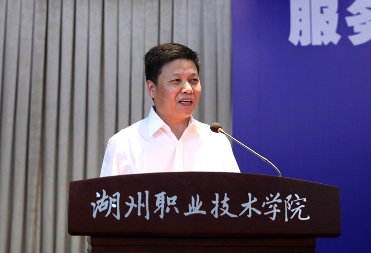 为进一步落实湖州市地校合作领导小组第二次会议精神,充分发挥行业企业在深化高等职业教育改革中的重要作用,促进人才培养供给侧和产业需求侧结构要素全方位融合,以更大力度推动地校合作的不断深化。7月6日,学校召开服务地方工作暨产教融合发展联盟成立大会,湖州市副市长项乐民出席大会并讲话。市政府党组成员、地校合作领导小组副组长兼办公室主任陈亚明,校党委书记周家健、校长沈建民、市经信委主任丁芳芳、市科技局局长王志芳、市人力社保局局长王树、市住建局局长李全明、市商务局局长褚连荣、市质监局局长宋波,联盟副理事长单位永兴特钢董事长高兴江、久立集团董事长蔡兴强、大东吴集团董事长吴淑英、湖州市电梯行业协会会长、巨人控股董事长钱江,市级相关部门领导和来自全市80家企业、行业协会、中职学校的代表以及学校领导班子成员、全体中层干部和骨干教师共300余人参加会议。大会由沈建民主持。