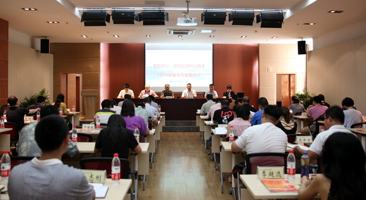 为贯彻落实全国、全省高校思想政治工作会议精神和学校《全面落实“五个起来”进一步加强和改进新形势下学校思想政治工作实施方案》文件要求,进一步提升辅导员的理论水平和素质能力,建设一支政治强、业务精、纪律严、作风正、善做思想政治工作的高素质辅导员队伍,8月28日,学校在教师发展中心举办2018年辅导员暑期培训,校党委副书记丁根林、学工部和团委负责人、二级学院党总支副书记及全体专兼职辅导员参加。