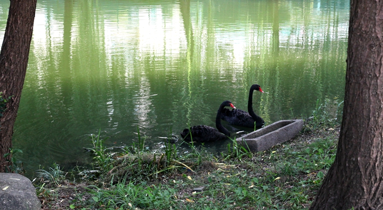学校引进的2只黑天鹅入住碧玉湖畔