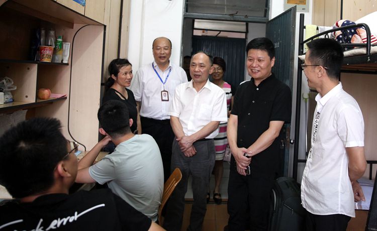 走访过程中,周家健、沈建民一行还认真查看了新生宿舍的住宿条件、卫生环境、生活设施等,对学生公寓的整体住宿条件表示满意,同时要求新生所在二级学院、相关职能部门和新宇公司要进一步加强管理,将大学生文明修身工程与公寓文明建设紧密结合起来,努力为学生营造一个安全、稳定、和谐的学习生活环境。