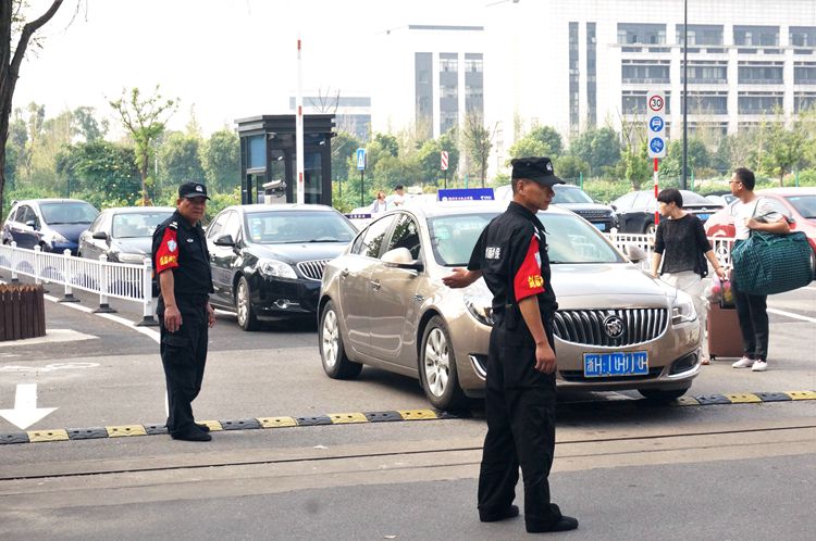 安保人员在维护校园交通秩序